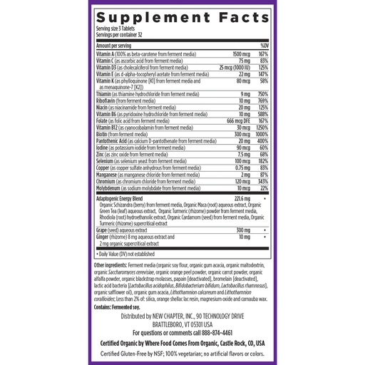Dietary Supplement Whole-Food Cultured Multivitamin with Nutrients for Energy, Mood, and Lactation Support. New Chapters G...