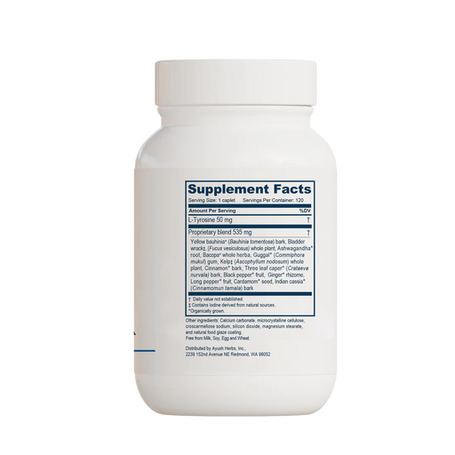 View full detailsThyro-M contains herbal, mineral and amino acid (tyrosine) preparation for thyroid support. It contains Commiphora mukul, Bauhinia tomentosa,Withan...