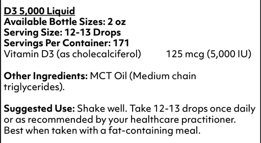 View full detailsVitamin D3 Supplement 5,000 IU Vitamin D3 per dose Naturally-sourced Vitamin D3 (not synthetic) in a fat-soluble base for improved absorption* No ...