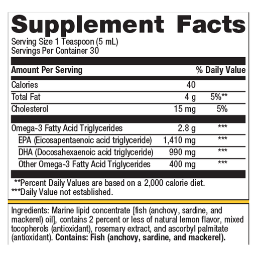 View full detailsOmegaGenics® Fish Oil EPA-DHA 2400 mg Liquid is a high-quality, multi-benefit fish oil. 1 Teaspoon per day supports: A strong and healthy heart* E...