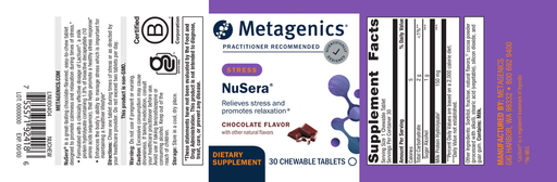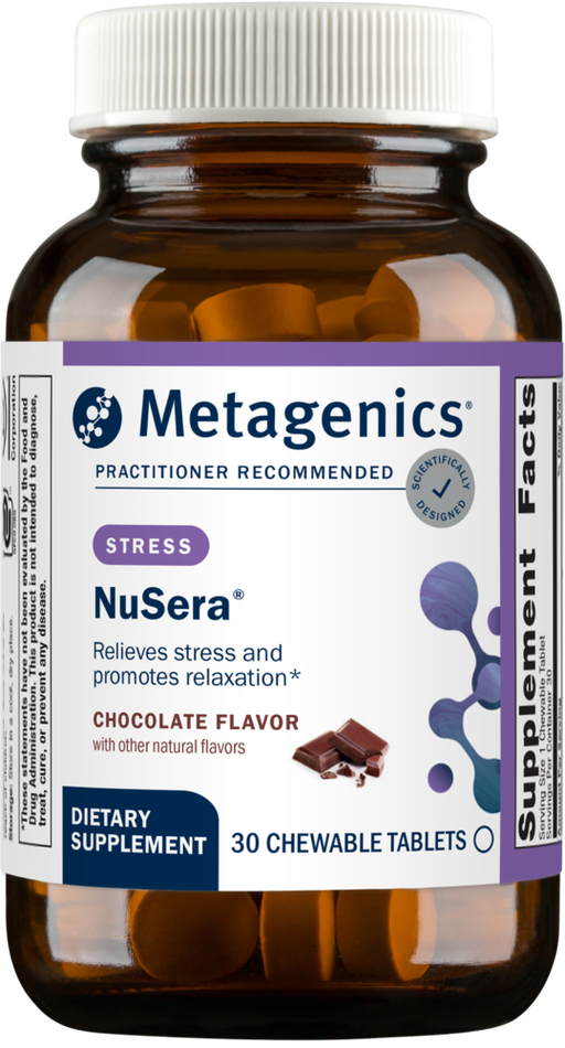 View full detailsNuSera® is formulated in a great-tasting, chocolate flavored chewable to help promote a feeling of calmness and relaxation during times of stress. ...