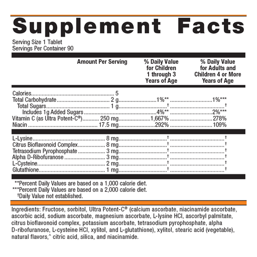 View full detailsUltra Potent-C®Chewable Vitamin C is a tasty, easy-to-take vitamin C supplement. Just one tablet provides the same amount of vitamin C found in fou...