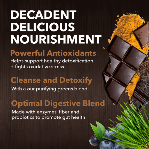 A blend of organic superfoods formulated into an irresistibly decadent and delicious whole foods drink sensation . Made to cleanse, alkalize and pu...