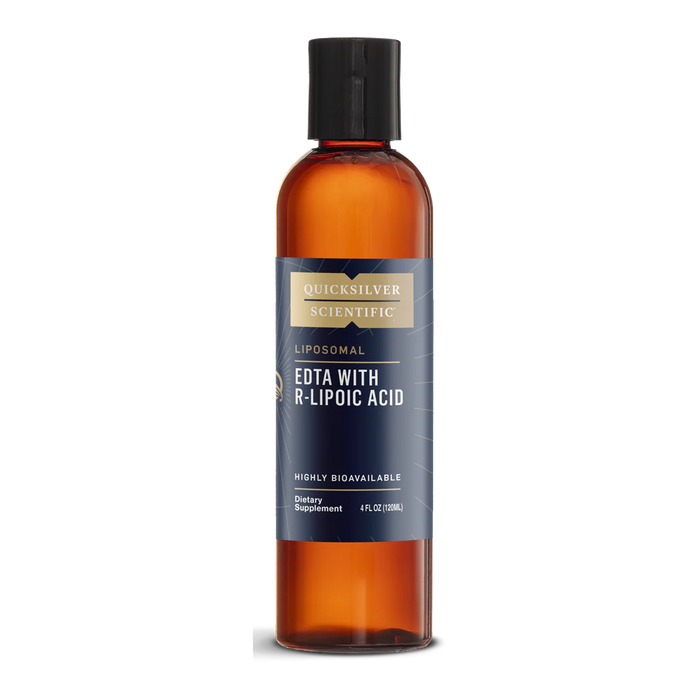 Each 5ml of Liposomal EDTA with R-Lipoic Acid delivers 210 mg of Disodium EDTA and 33 mg of R-Lipoic Acid. A serving size is 2 scoops. Each bottle contains 24 servings. Liposomal EDTA with R-Lipoic Acid is a highly absorbable form of oral EDTA (Ethylenediaminetetraacetic acid). EDTA can bind to certain metals, allowing the body to more easily remove them. R-Lipoic acid is added for its ability to help regenerate the antioxidant vitamins C and E, supporting the action of EDTA.* EDTA is most effective when it can act on a cellular level to bind with metals. Lipoic acid can support EDTA by extending the activity of the antioxidant vitamins C and E, supporting levels of energy-rich CoQ10, and assisting production of our master antioxidant, glutathione. The sodium R-lipoate in this formula offers highly efficient uptake.* Because conventional oral EDTA supplements (tablets or capsules) have low bioavailability , Dr. Christopher Shade, Ph.D., developed Liposomal EDTA with R-Lipoic Acid. Liposomes can protect the core ingredients from the digestive system and increase their uptake and cellular optimization. Quicksilver Delivery Systems utilizes modern science to unleash the power of nature. With the worlds most advanced phospholipid delivery systems, Quicksilver Scientific supplements can help to nourish your cells with phosphatidylcholine as they deliver their core effective ingredients faster and more efficiently.