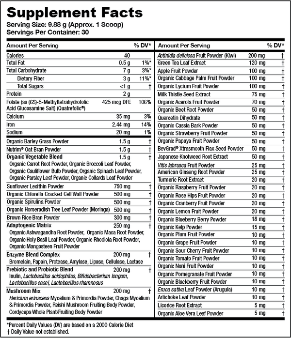 Clean Ingredients You Can Trust. We believe in transparency and quality. Greens First is made with dozens of organic fruits and vegetables, whole-food ingredients - all vegan, non-GMO, and free from artificial additives, sweeteners, and preservatives. Just pure, natural nourishment to help you feel your best every day.