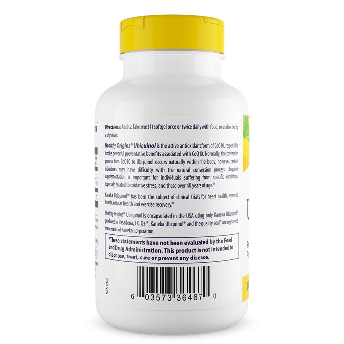 Healthy Origins® Ubiquinol (also called Kaneka QH®) is the active antioxidant form of CoQ10, responsible for the powerful preventative benefits associated with CoQ10. Normally, the conversion process from CoQ10 to Ubiquinol occurs naturally in the body, however certain individuals may have difficulty with the natural conversion process. Ubiquinol supplementation is especially important to: individuals suffering from specific conditions, especially related to oxidative stress, and adults over 40 years of age. Healthy Origins® Ubiquinol is encapsulated in the USA using only Kaneka QH® produced exclusively in Pasadena, Texas.*